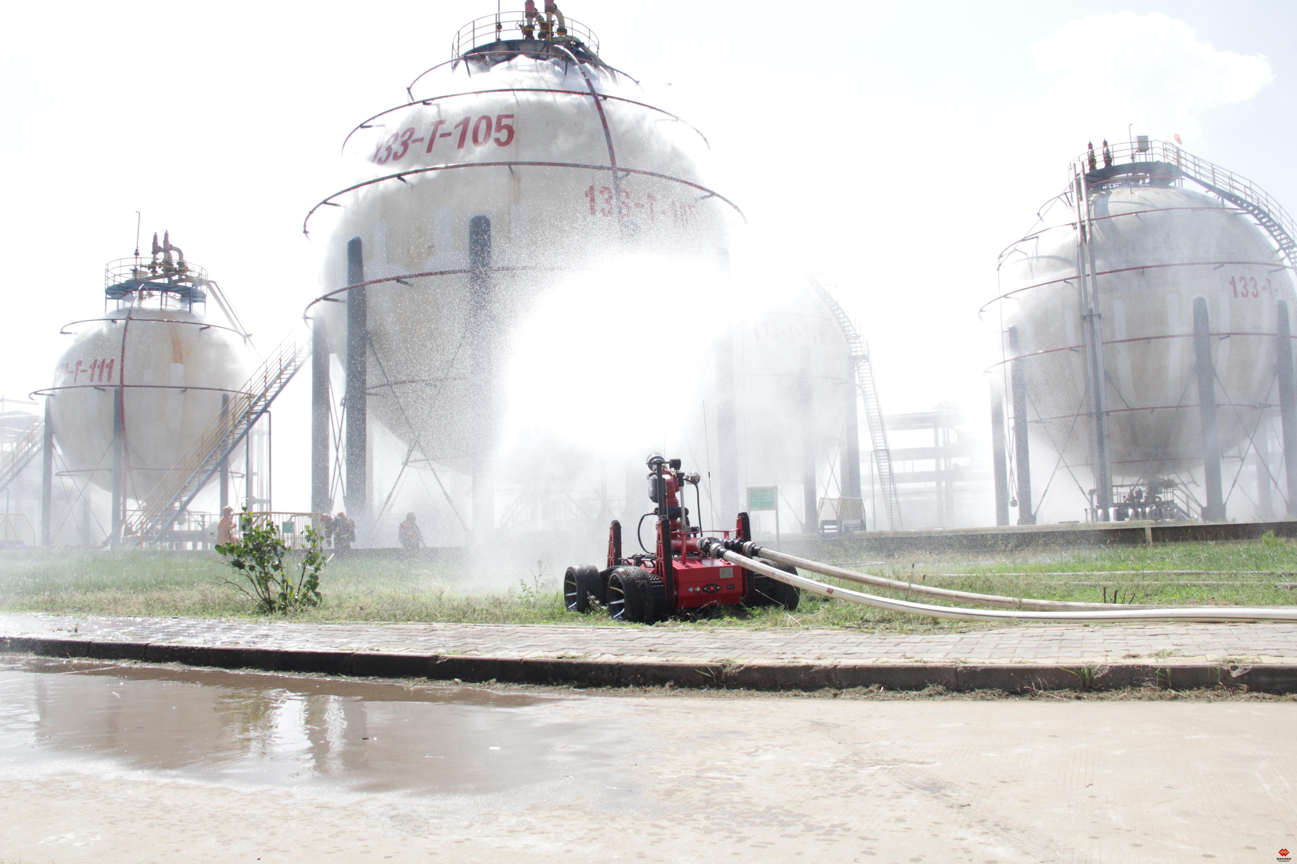 該隊高度重視裝備建設(shè),在鄂爾多斯地區(qū)同行業(yè)中處于最領(lǐng)先地位?,F(xiàn)配置有多種專業(yè)消防車輛共計22輛,分別為:72米、40米、32米、18米曲臂高噴車各1輛,渦噴消防車1輛,12噸重型泡沫消防車4輛,6噸重型干粉車1輛,25米三項射流車1輛,搶險救援車1輛,氣防救護車2輛,供液消防車1輛,化學洗消車1輛,消防滅火偵檢機器人運輸車1輛,5.5噸水罐車1輛,具備影像采集、傳輸及臨時會議功能的通訊指揮車1輛,特拉卡指揮車1輛,運兵車1輛。同時,基地還配備消防滅火偵檢機器人3臺、無人機3架,配置滅火、偵檢、破拆、堵漏、抗洪、驅(qū)煙、高空救援等7大類、約400余種應(yīng)急救援器材,搭建了三維模擬培訓與演練評估、現(xiàn)場應(yīng)急救援輔助決策、小型移動應(yīng)急平臺和應(yīng)急平臺終端指揮等系統(tǒng)??谷芘菽?、水成膜泡沫、干粉、超細干粉、火冰等各類滅火藥劑常年總儲備量在100噸以上。應(yīng)急救援裝備和科學救援實力大幅提升。