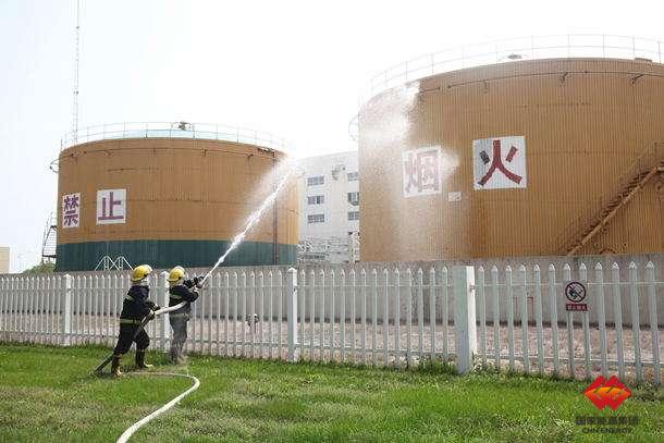 本次演練模擬該公司人員在巡檢過程中發(fā)現(xiàn)油區(qū)油罐頂部著火,第一時間匯報值長并迅速報警,并切斷電源啟動噴淋設(shè)施、泡沫滅火系統(tǒng)控制火情。該公司專職消防隊接警后火速支援,利用高壓水槍將火情徹底消除。該公司運行部、維修部、消防隊及相關(guān)部門人員參加了此次演習(xí),生產(chǎn)技術(shù)部、安全監(jiān)察部對火災(zāi)演習(xí)進(jìn)行了監(jiān)督指導(dǎo)。