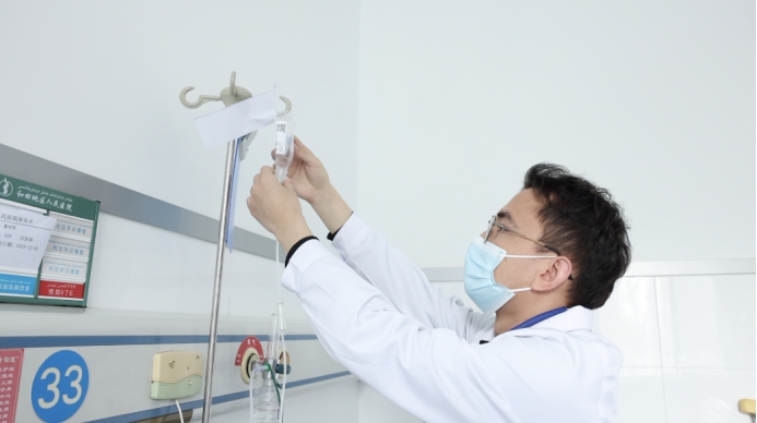 圖為阿布迪熱合曼·圖爾蓀為患者換藥