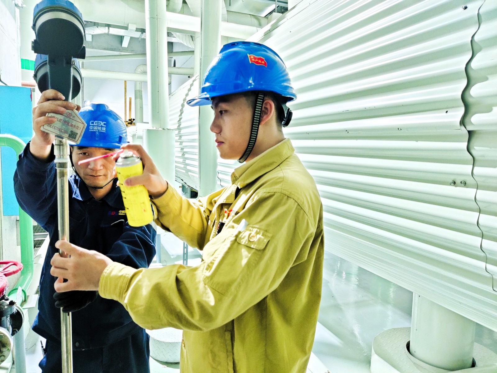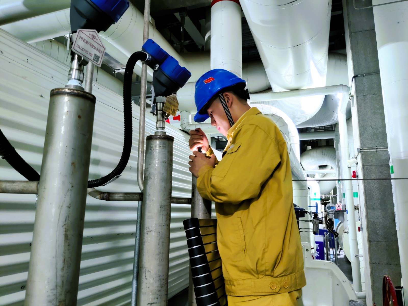 圖為屈杰在檢查低加液位計(jì)內(nèi)部結(jié)構(gòu)