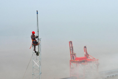 圖為北侖電廠廠內(nèi)安裝測(cè)風(fēng)塔(北侖電廠張夢(mèng)雷攝)
