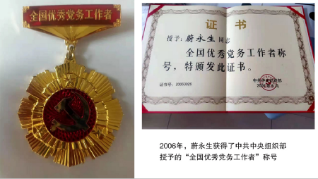 2006年,是蔚永生人生中的高光時刻,那一年,他獲得了中共中央組織部授予的“全國優(yōu)秀黨務工作者”稱號,受到了時任中共中央總書記胡錦濤的接見,他也是烏海市建市以來第一個獲此殊榮的人。