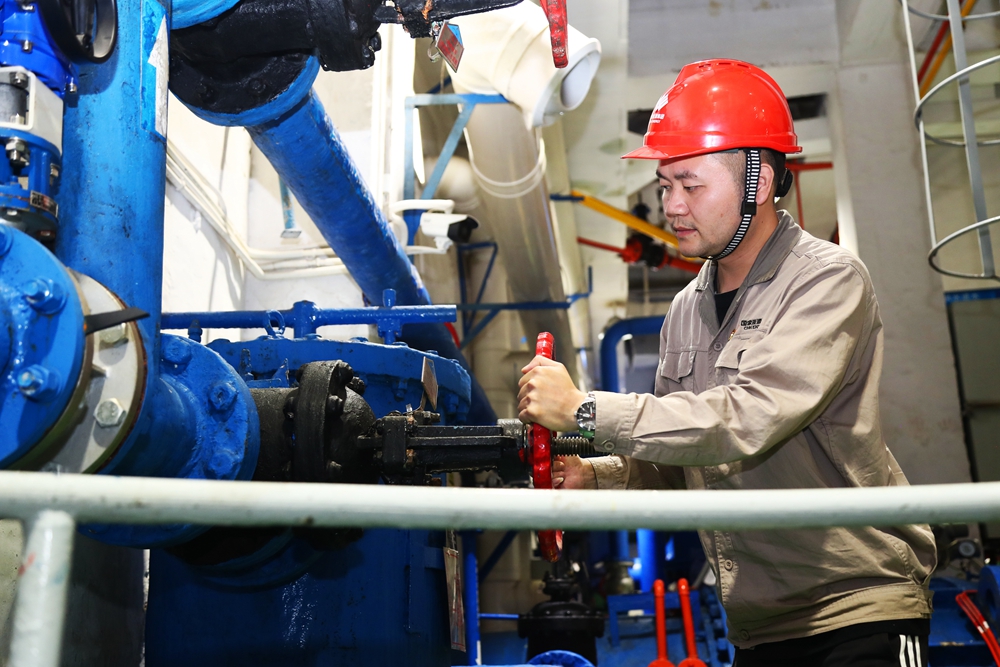 經(jīng)濟(jì)運(yùn)營(yíng)部調(diào)度正值班員在調(diào)節(jié)閘閥