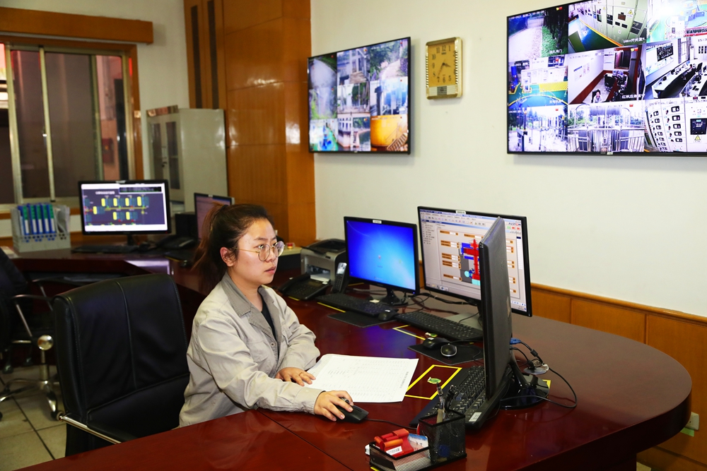 經(jīng)濟(jì)運(yùn)營(yíng)部調(diào)度副值班員在調(diào)度室查看設(shè)備運(yùn)行參數(shù)