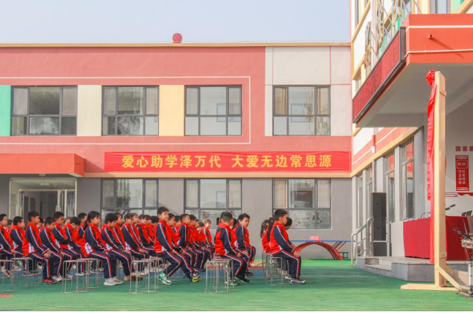 上午十點,小學部的學生們都佩戴好了紅領(lǐng)巾,整齊地坐在操場上參加國家能源集團愛心學校的揭牌儀式。這座由國家能源集團全資援建的愛心學校莊嚴地屹立在這片“新中國從這里走來”的土地上。