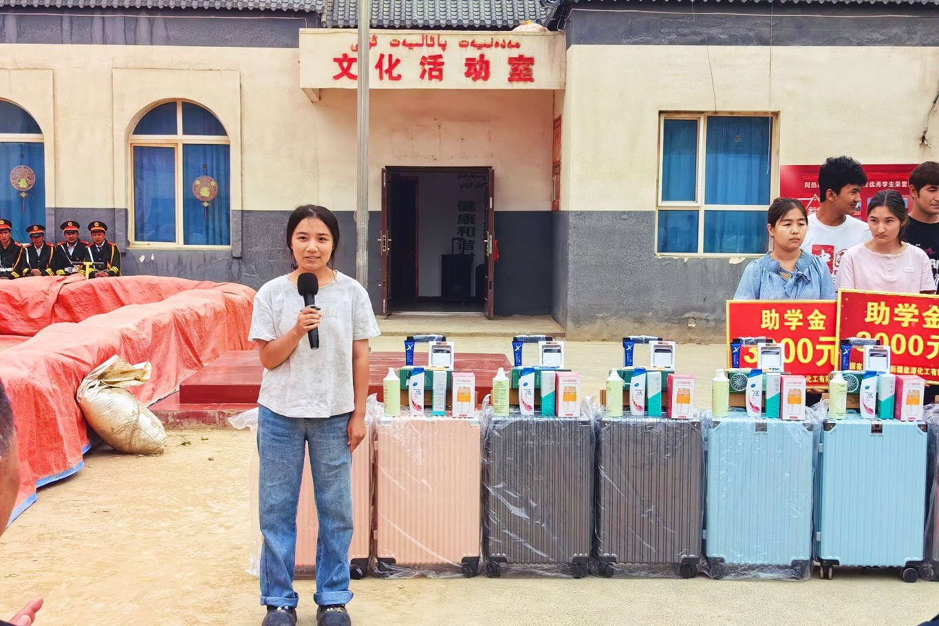 說起教育幫扶的初心,劉靖分享了一個讓他難忘的故事:“三年前,我們幫扶的茹克亞木?買提斯迪克,現(xiàn)在已經(jīng)是西北農(nóng)林科技大學(xué)的博士生了,她還是阿熱勒鄉(xiāng)第一個博士生!今年暑假,她沒回家,留在學(xué)校說要抓緊時間搞研究,將來用專業(yè)知識幫家鄉(xiāng)發(fā)展特色農(nóng)業(yè)。”他頓了頓,目光望向在場的學(xué)子:“這就是教育的力量。資助一個學(xué)生,就能點亮一個家庭的希望,甚至能帶動整個村子的風(fēng)氣。新疆能源始終堅信,發(fā)展教育是實現(xiàn)鄉(xiāng)村全面振興的根本之策。我們不僅要幫孩子們‘走出去’看世界,更要鼓勵他們‘走回來’建家鄉(xiāng),讓人才扎根南疆,讓希望在這里生長?!?/p>