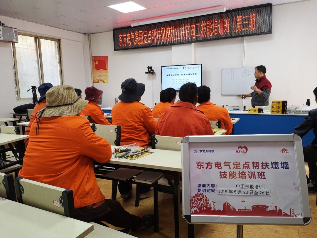 東方電氣集團先后派出技能出眾、技藝嫻熟的優(yōu)秀教師18人次,在壤塘縣石里鄉(xiāng)、宗科鄉(xiāng)、蒲西鄉(xiāng)等累計開展電工、焊工技能培訓共9期,培訓貧困人口157人。