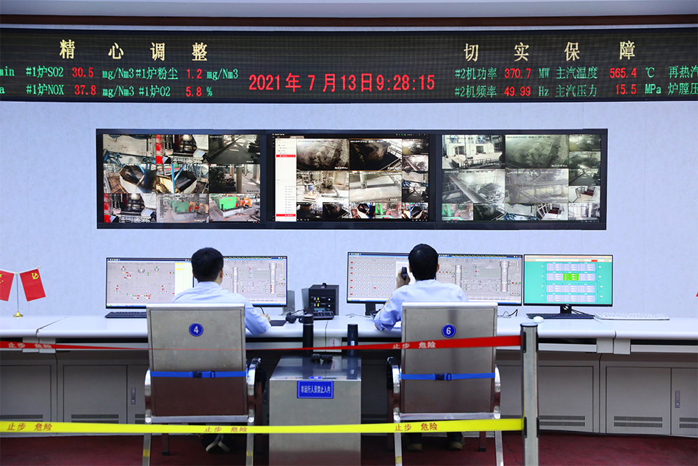 圖為在寶慶電廠集中控制室,運(yùn)行值班員劉帥、陳偉正在監(jiān)盤。