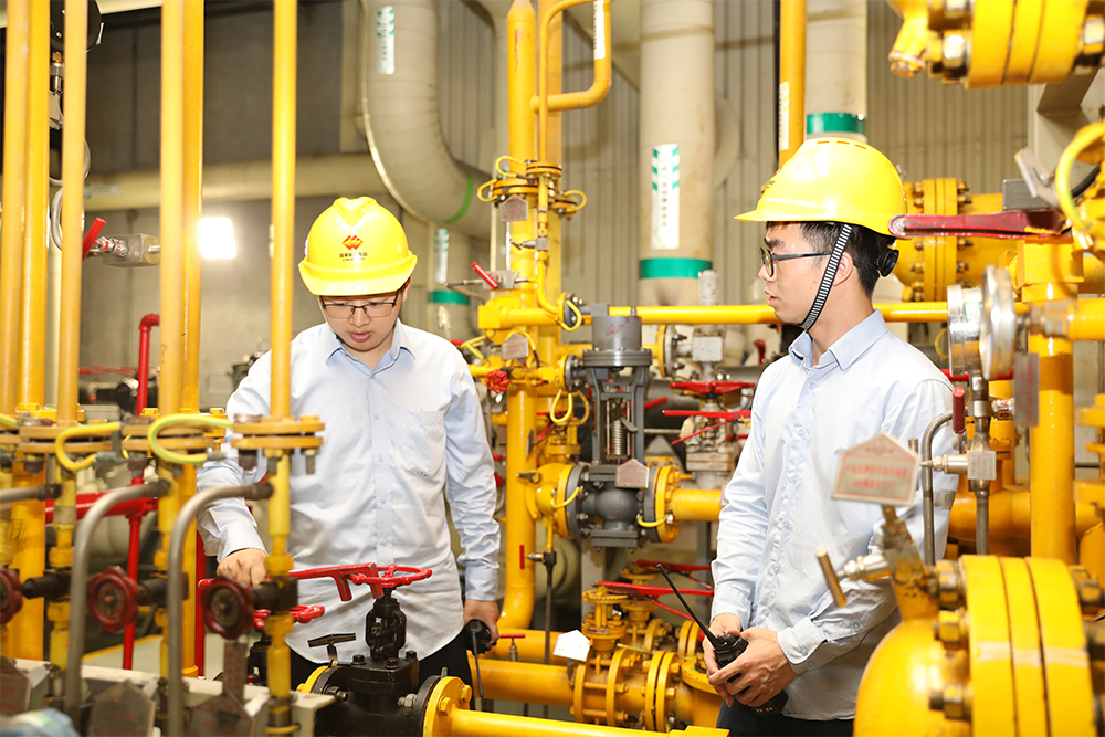 圖為寶慶電廠發(fā)電運(yùn)行部巡檢員顏慶江、劉棵正在車間里調(diào)節(jié)氫側(cè)密封油壓差
